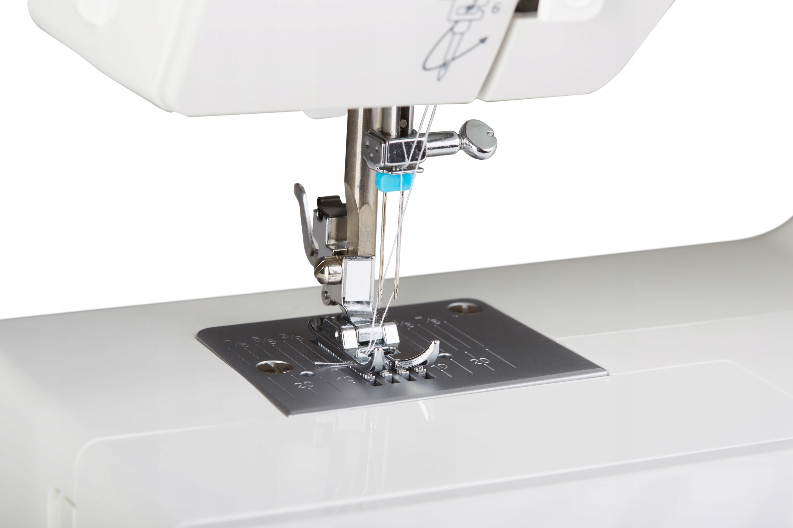 Аксесуари Великий тримач бобіни, Кабель живлення, Набір голок, Малий тримач бобіни, Масло, Штопальна пластина, Фетрова накладка для котушки, Розпушувач, Ножне керування з кабелем, Викрутка, Лапка для ґудзиків, Лапка для петлі, Лапка для шиття на блискавці, Універсальна лапка, Шпульки, Штифт для котушки Документація включена: Посібник польською мовою, Гарантія картку
