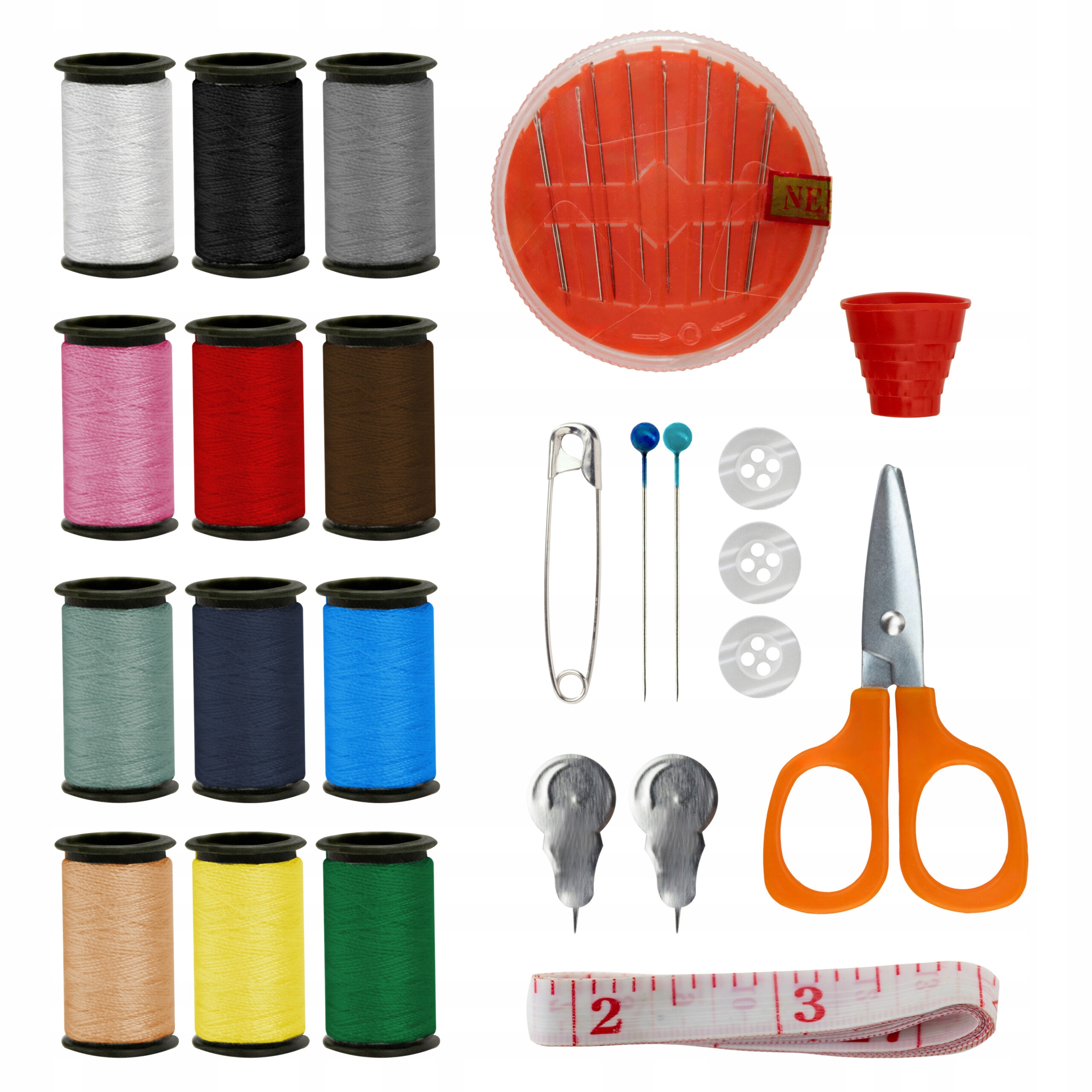 ✨Швейний набір - це елемент, без якого неможливо почати ремонт або пришити ґудзик. У набір входить 12 котушок швейних ниток - кожна різного кольору.Нитки міцні та стійкі до розриву. Призначений для ручного та машинного шиття.