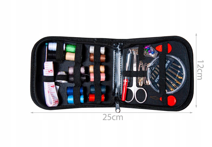 Цей унікальний набір неодмінно стане в нагоді всім, хто почав або збирається розпочати свою пригоду з шиття. Він містить усе необхідне для рукоділля, зокрема: ножиці, рулетку, голки, нитки, нитковдевачі, гудзики та шпильки. Аксесуари доступні в різних кольорах, що робить їх приємними для очей.