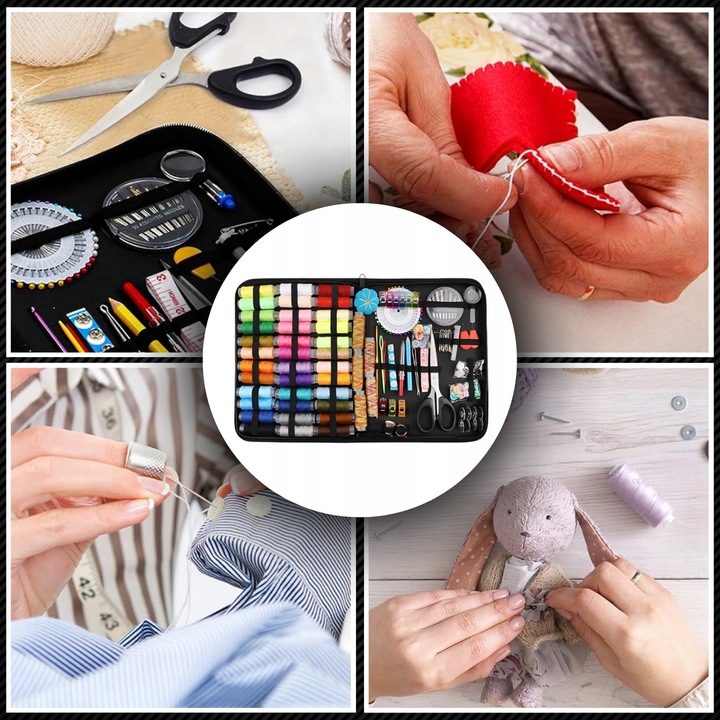 Швейний інструмент в елегантному кейсі. Ця річ ідеально підходить для швачок і людей, які займаються шиттям щодня. Він містить усі основні речі, необхідні для пошиття чи ремонту одягу. Футляр складається з 226 елементів, серед яких: нитка, рулетка, ножиці, голки або наперсток. З ним ви можете пришити ґудзики до різного одягу тощо.