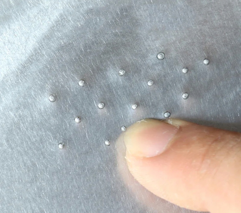 На фотографії показані невеликі точки зварного зв’язку, які були збільшені десять разів, показуючи точність та делікатність роботи пристрою.