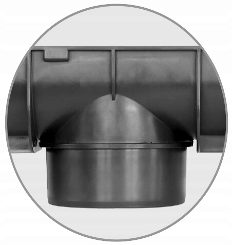 Кожний лоток має заводський вертикальний вихід, який дає змогу під’єднатися до труби ø110. Для використання цього рішення необхідно використовувати спеціальний роз'єм. З’єднувач можна придбати на окремому аукціоні.