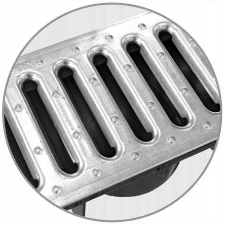 Решітки кріпляться до лотків засувкою. Це гребнева система, яка дозволяє швидко монтувати та демонтувати решітку без використання додаткових інструментів.