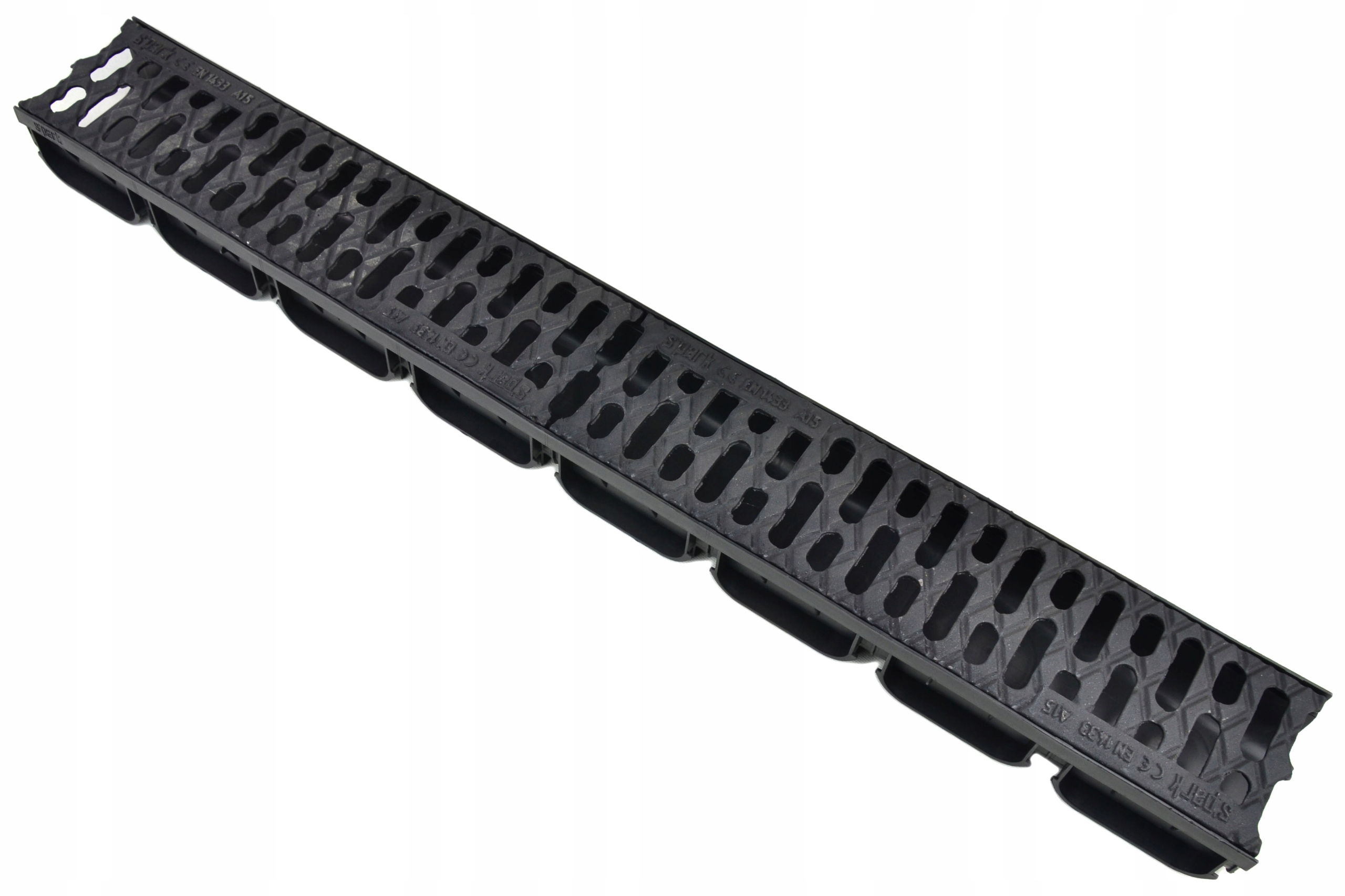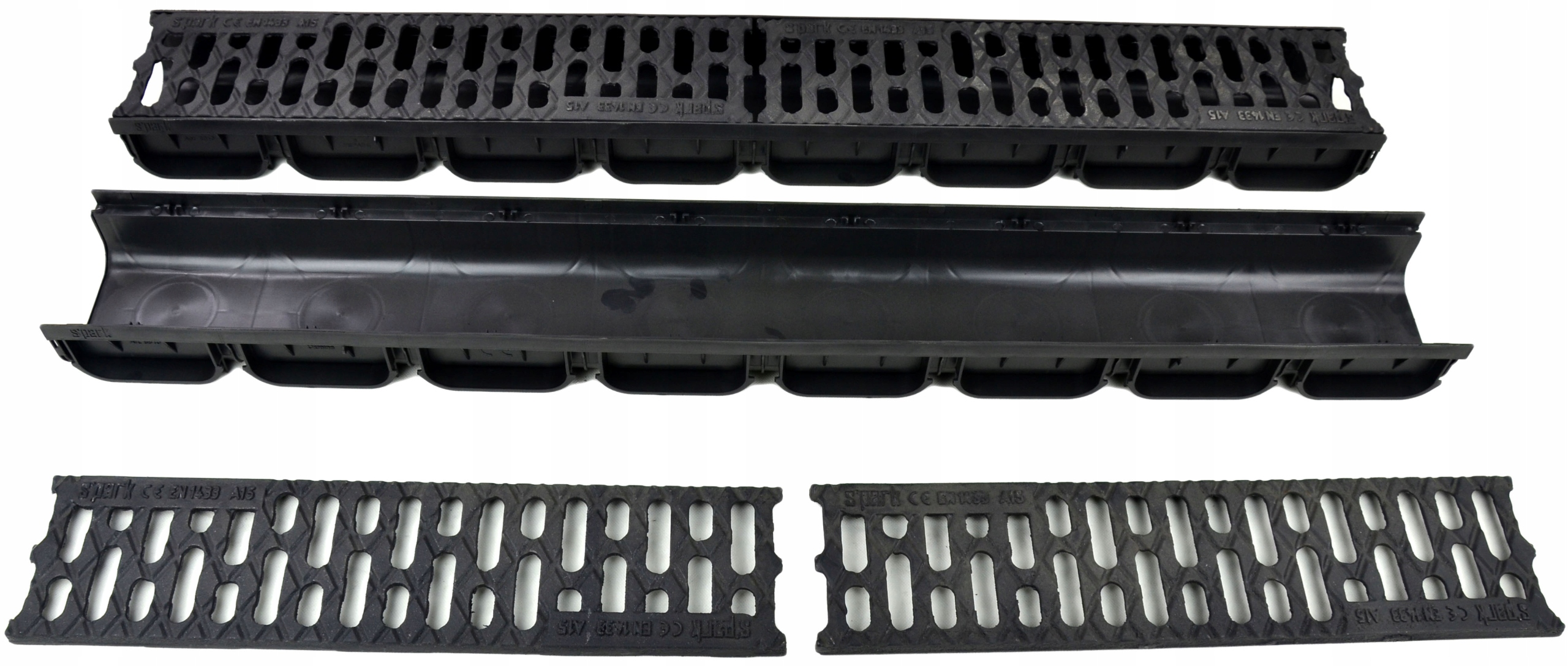 Пластикові канали з чавунною решіткою А15+ для відведення води (дренажу) в саду, гаражі, під'їздах до будинку та в усіх інших місцях, де немає інтенсивного руху. Легка та міцна конструкція полегшує монтаж і транспортування.