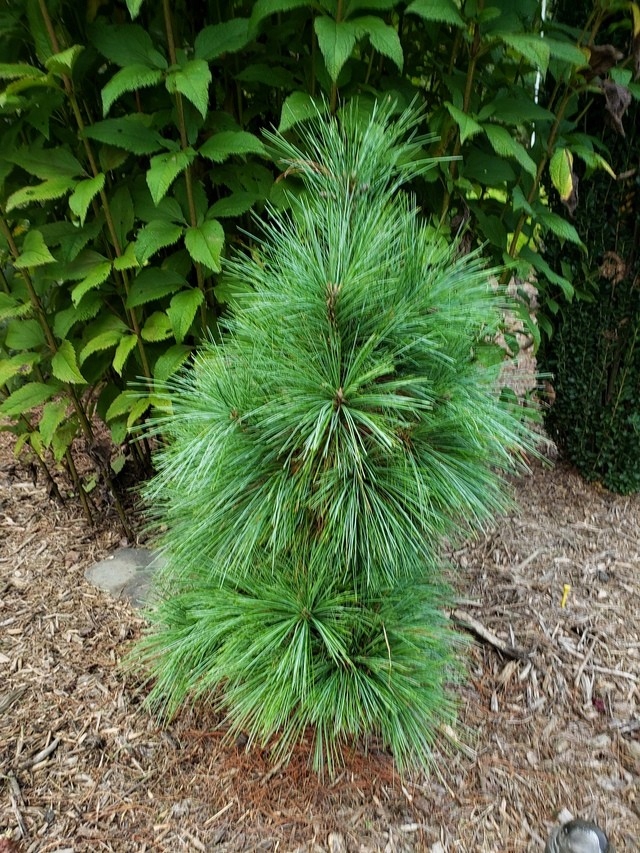 Прекрасний сорт сосни, створений як мутація білої сосни та гімалайської сосни. З-поміж інших сосен її точно вирізняє зовнішній вигляд хвої, довгої, м’якої, щільної, сріблясто-блакитного кольору. Росте повільно, досягаючи максимальної висоти 3-5 м. Має конічну, компактну форму. Уже в молодому віці дає злегка вигнуті, однаково декоративні шишки. Віддає перевагу сонячним місцям і дренованим, помірно вологим ґрунтам. Має повну морозостійкість. Ідеально підходить для присадибних ділянок і відкритих місць. Через повільне зростання рекомендований для бордюрних композицій.