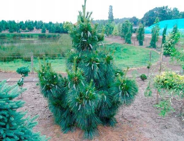 Карликова різновид сосни, досягає компактних розмірів - в 10 років близько 1,5 м у висоту і 1 м в ширину (річний приріст близько 15 см). Він був створений шляхом схрещування сосни гімалайської з білою, завдяки чому перейняв найкращі риси обох видів.