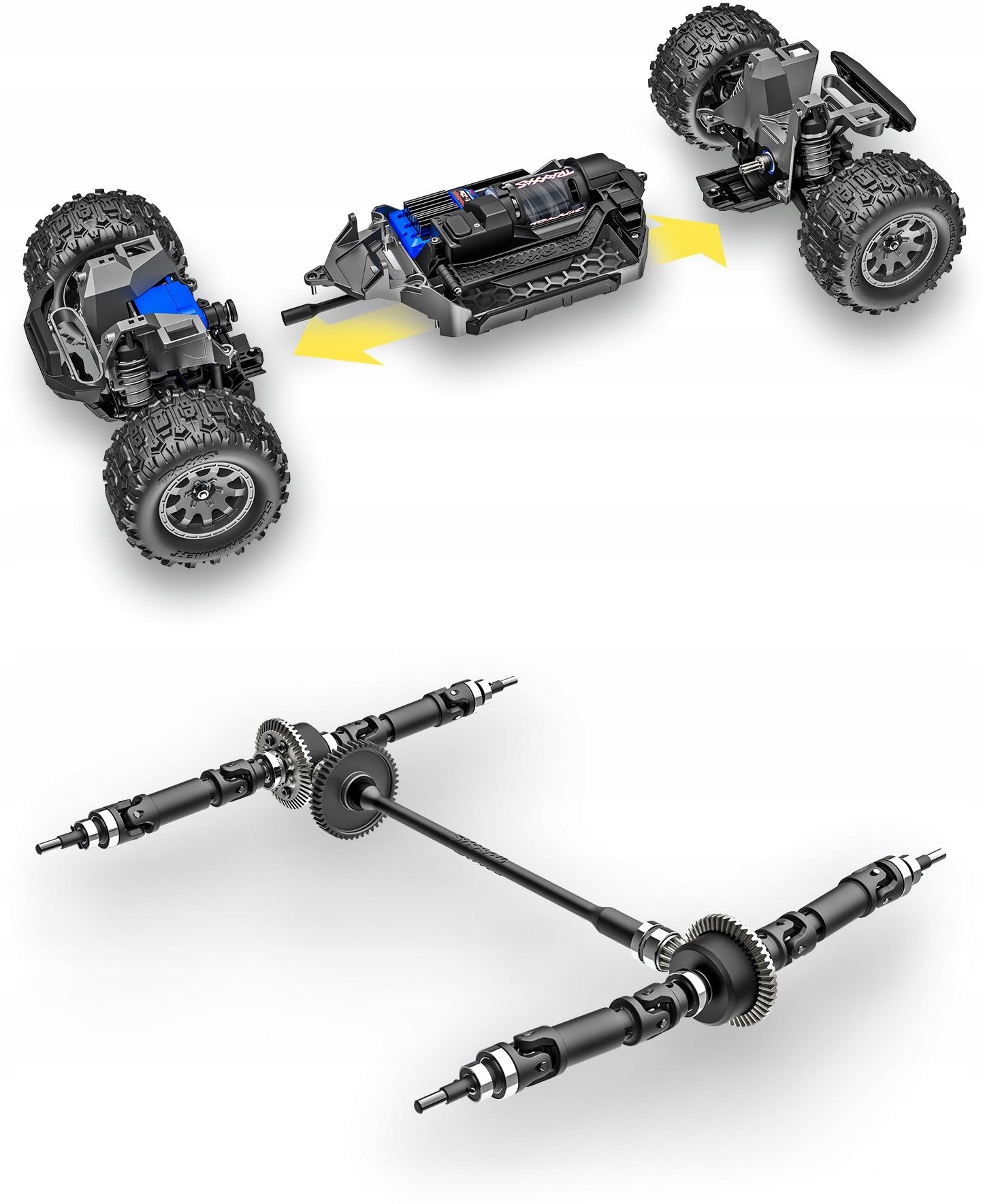 mini maxx був розроблений відповідно до більш високих стандартів у діапазоні компонентів системи приводу 4x4 в 1/10. Великі диференціали зі сталевими передачами, суцільними передачами на 32 градуси та міцними накопичувачами з урядованими з'єднаннями значно перевищують вимоги до міцності та тривалого життя.