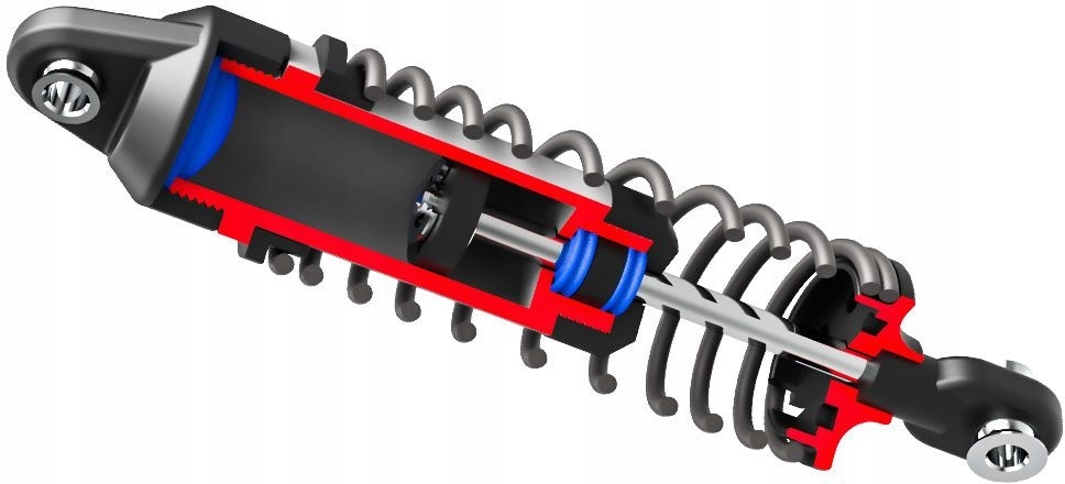 mini maxx використовує однакові вміст Acraper ackash Alack, які можна знайти в Monster Traxxas Monster Traxxas за шкалою 1/10, забезпечуючи справді плавний стрибок підвіски. Велика ємність нафти та довговічна конструкція ударних ударних поглиначів поглинають високі стрибки та вихідні навантаження, забезпечуючи плавне водіння. Їх легко налаштувати їх широким спектром наявних масел, пружин та поршнів.