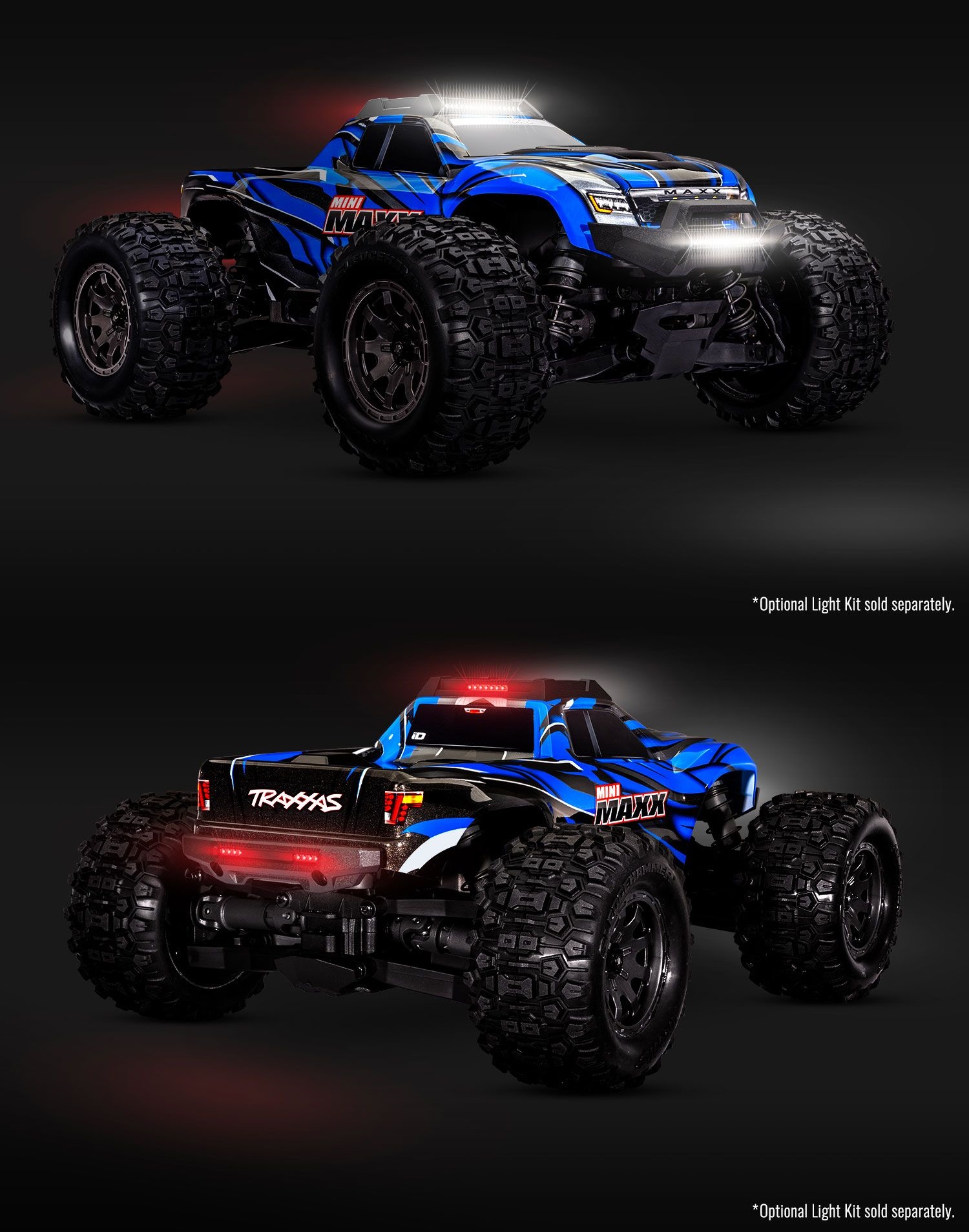 Traxxas пропонує освітлювальний набір, який можна легко встановити в Miniaxx, додаючи реалістичний вигляд транспортному засобу. Побудовані світлодіоди забезпечують інтенсивне світло, що дозволяє їздити в темряві, а також додає реального персонажа моделі. Крім того, освітлення підкреслює динамічну конструкцію транспортного засобу, що робить Miniaxx дивовижним, особливо під час нічних атракціонів.