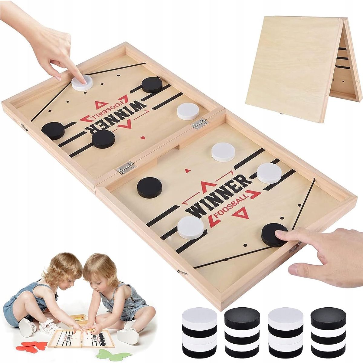 Гра Sling Puck, велика настільна гра в настільний хокей, хокейна настільна іграшка, гра Sling Puck на швидкість, дерев’яна настільна гра з катапультою, взаємодія батьків і дітей, дошка для настільних шахів, вечірні ігри на комп’ютері