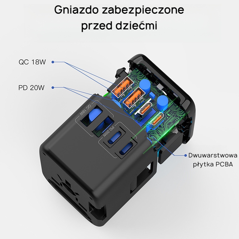 Адаптер для подорожей з швидкою зарядкою PD 20W та QC 18W - ідеально підходить для кожної подорожі!