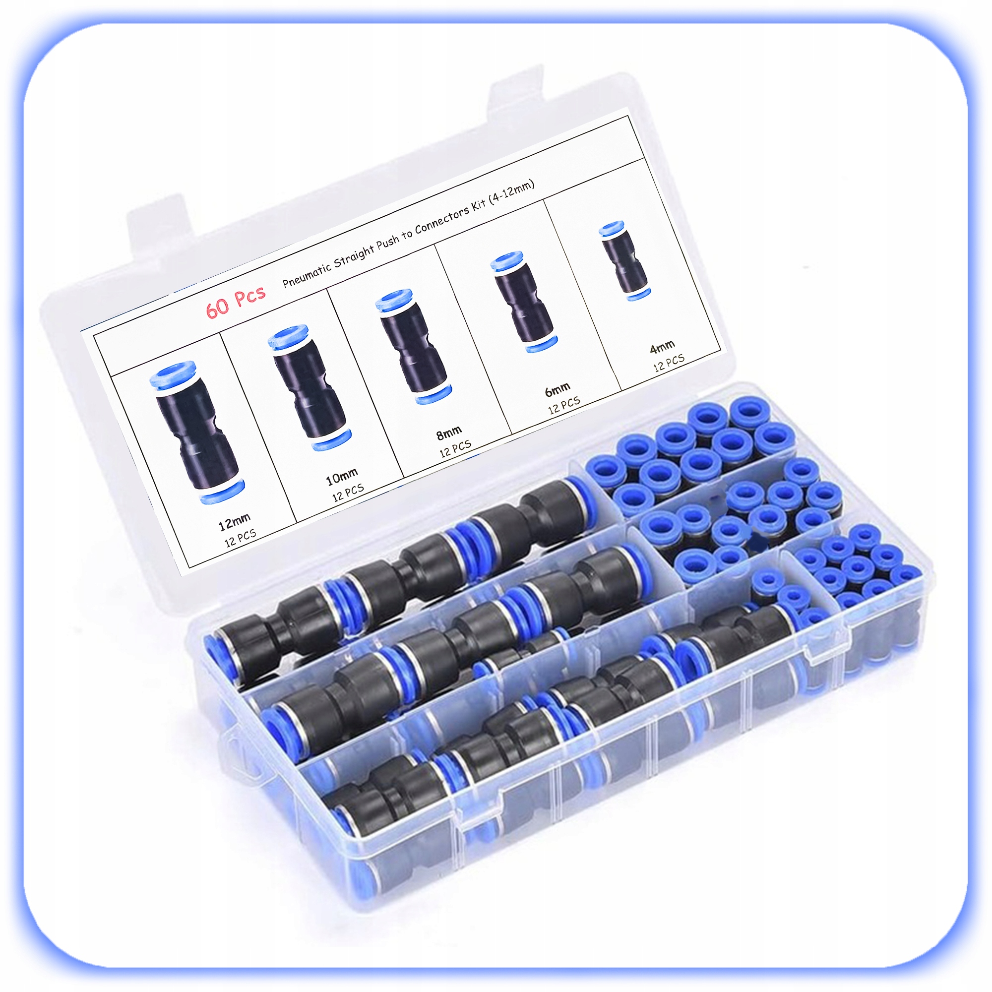 🧰 Цей набір із 60 пневматичних швидкоз’єднувачів 4-12 мм є практичним, міцним і зручним рішенням для будь-якої інсталяції стисненого повітря.