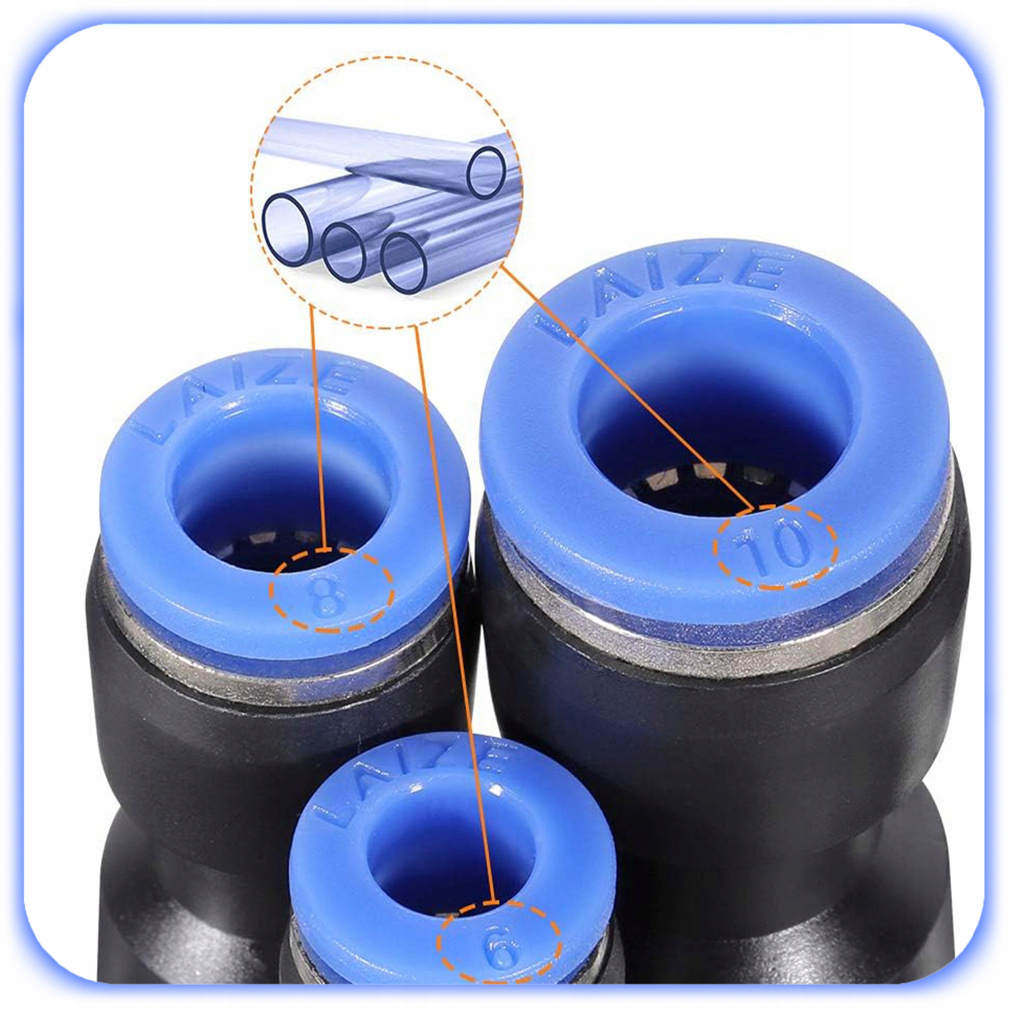 Пневматичні з’єднувачі Push-in дозволяють швидко підключати кабелі без використання інструментів. Просто вставте шланг, щоб отримати стабільне та щільне з’єднання.
