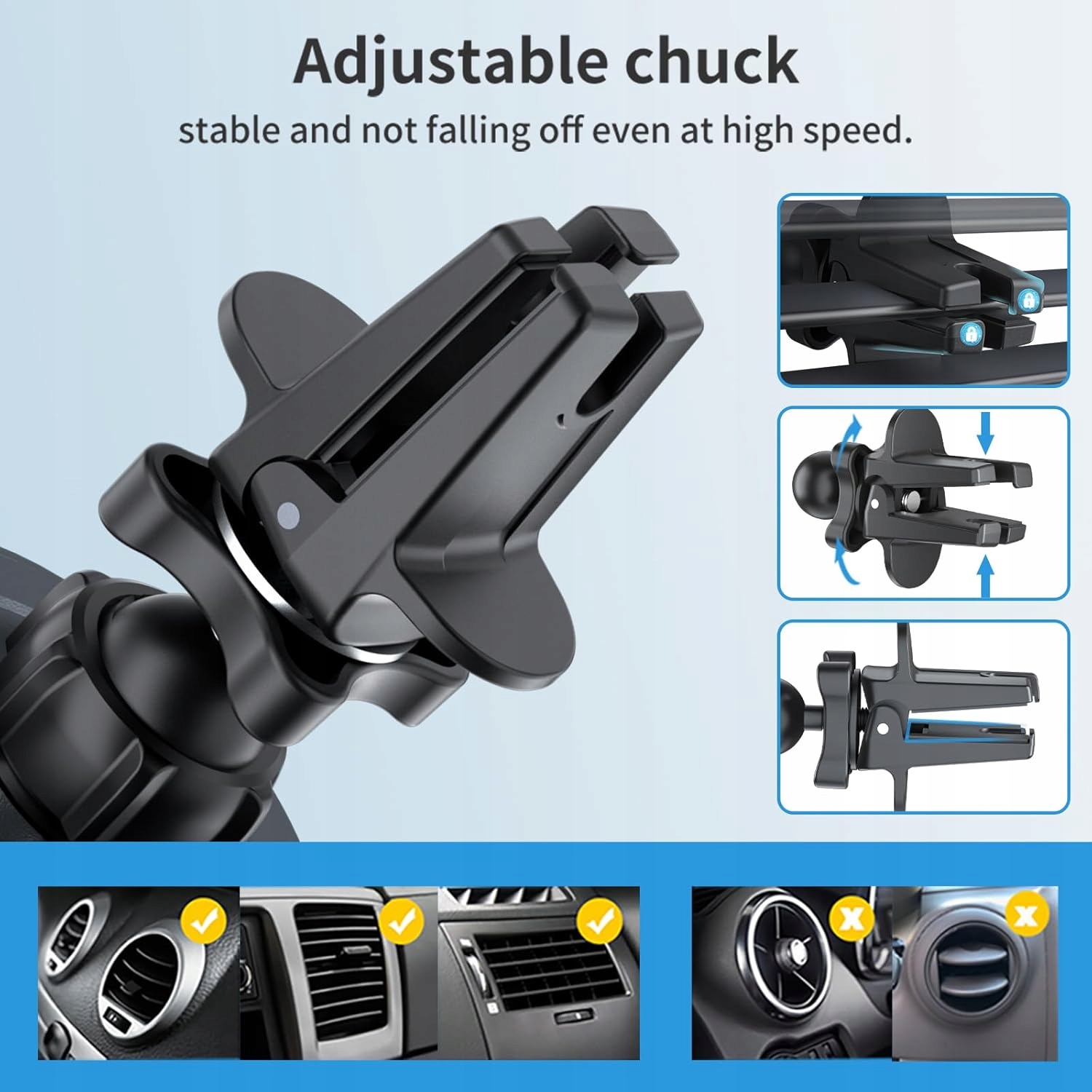 - 2 Методи кріплення: просто поставте ручку на телефон у будь -якому отворі вентиляції в машині. Надійна 3M VHB Self -Adhevy Pad забезпечує високу адгезію приладової панелі. Крім того, він невеликий і підходить до всіх моделей автомобілів.