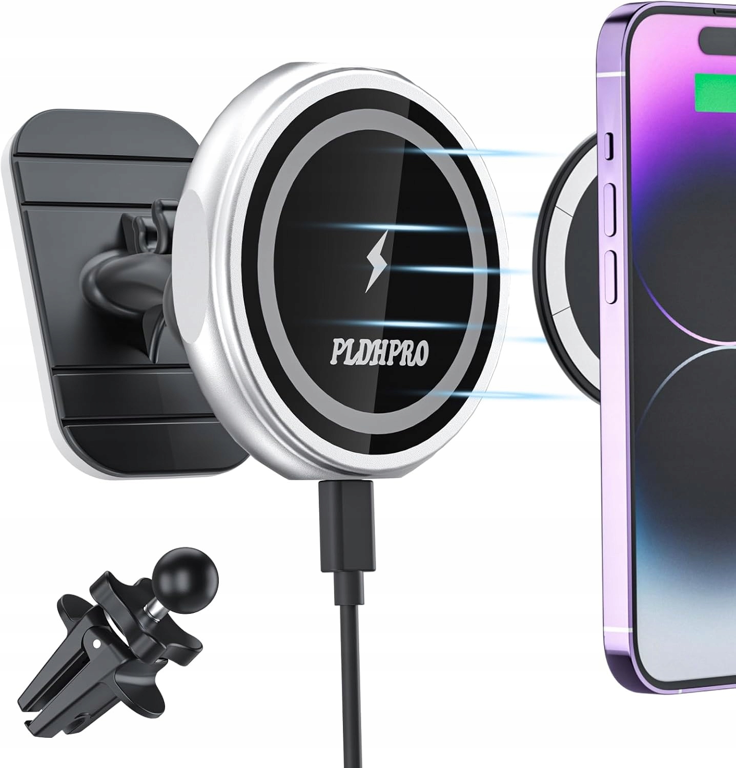 - до iPhone Series 12 13 14 15 16: Цей магнітний зарядний пристрій бездротового автомобіля сумісний лише з iPhone 13 14 15 16 16 16 Зазвичай i Pro, 13 Pro Max, 13 Mini, iPhone 12, iPhone 12, iPhone 12 Mini, iPhone 12 Pro Max, Magnetic Housing. Автомобільний зарядний пристрій має вбудований магнітний елемент, а сильна силова всмоктування дозволяє точно підходити до телефону. 4 Просто покладіть iPhone 13 на власник автомобіля Magsafe, і він буде автоматично заблокований в одній лінії з котушкою зарядки, щоб отримати максимум 15 в магнітній швидкій зарядці та більш стабільній зарядці.