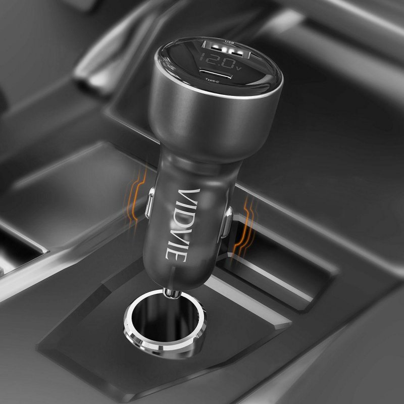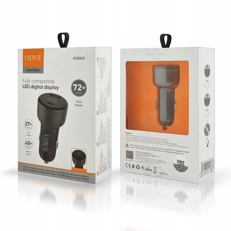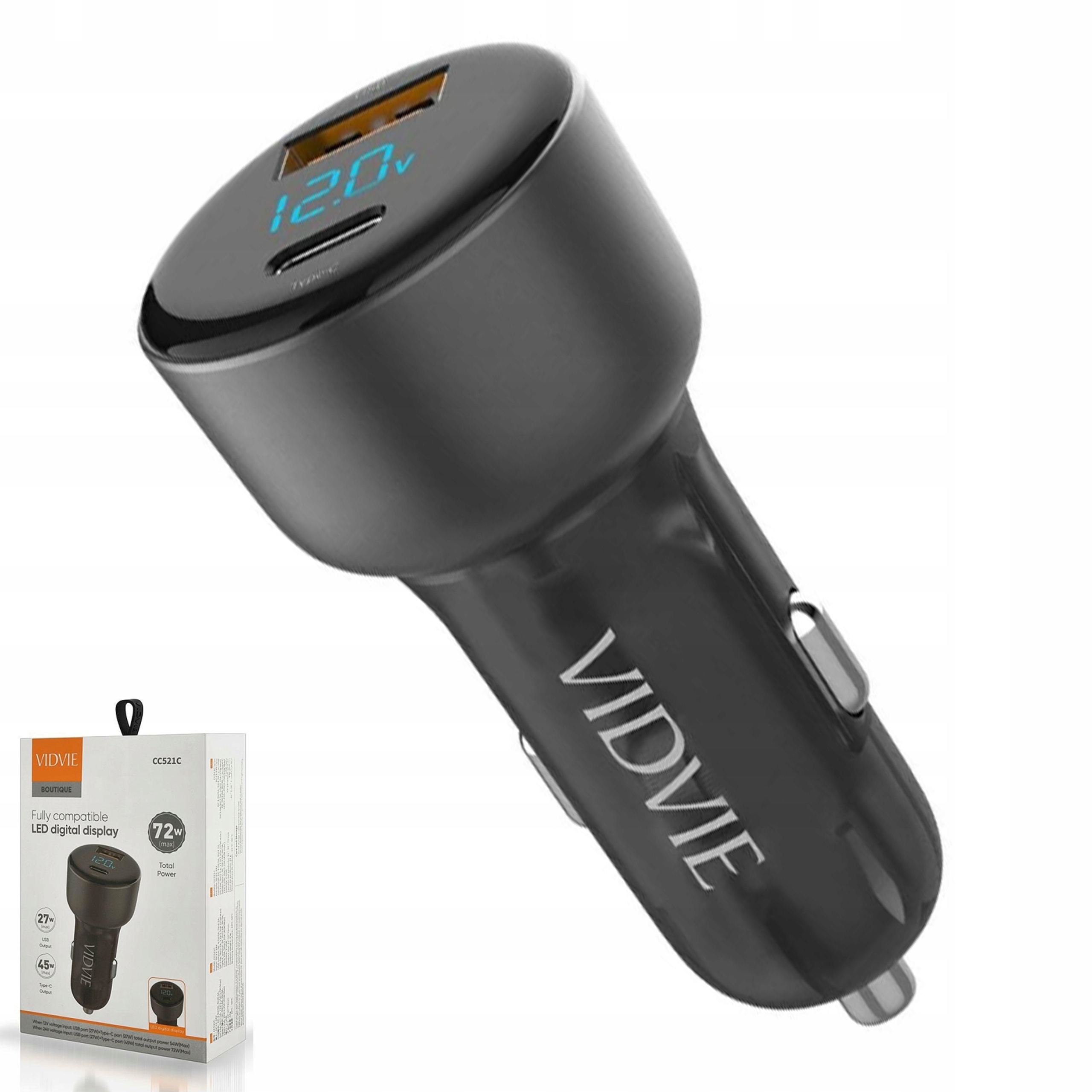 ШВИДКИЙ АВТОМОБІЛЬНИЙ ЗАРЯДНИЙ ПРИСТРІЙ 72 ВАТТИ З ВОЛЬТМЕТРОМ 1xUSB 27W+1xType C 45W
