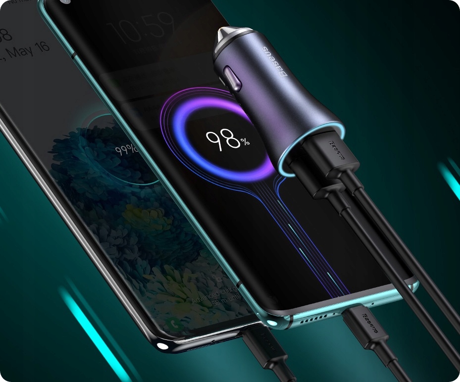ШВИДКИЙ АВТОМОБІЛЬНИЙ ЗАРЯДНИЙ ПРИСТРІЙ BASEUS USB-C PD ДВА ПОРТА 40 ВТ БЕЗПЕЧНИЙ