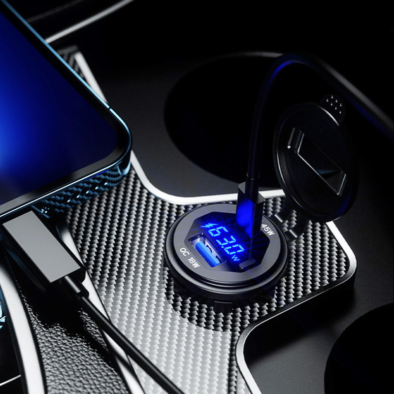 Швидкий автомобільний зарядний пристрій для мотоциклів 65 Вт 2x USB TYPE-C PD 45 Вт вольтметр