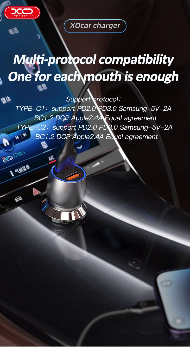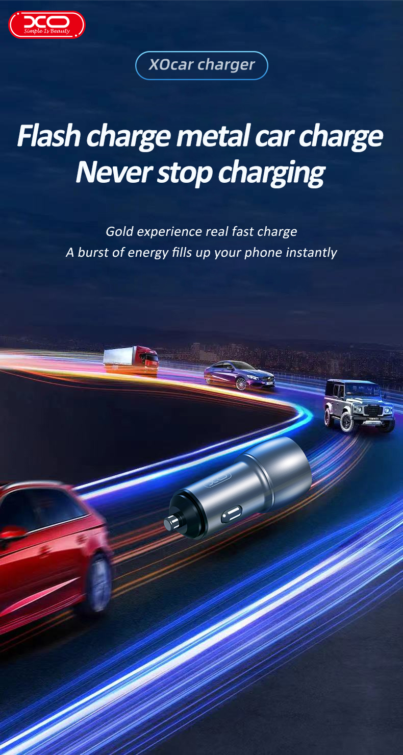 ✅ Швидкий автомобільний зарядний пристрій XO має два швидкісні порти USB: