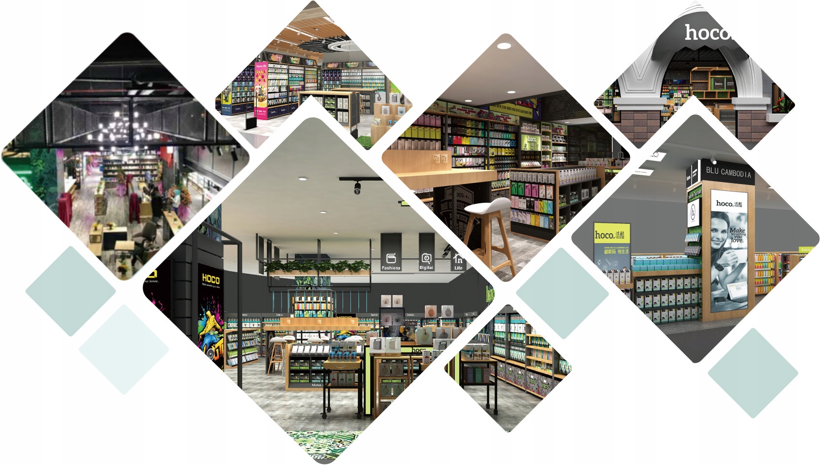 Ми зосереджені на мультижанровому продукті, компанія також має намір побудувати бренд як мережу роздрібних магазинів із власним брендом, які продають переважно аксесуари для hoco та побутову електроніку. Ми зосереджуємося насамперед на якості та приділяємо більшу частину свого часу й енергії створенню простих, практичних і різнокольорових виробів у молодому стилі.