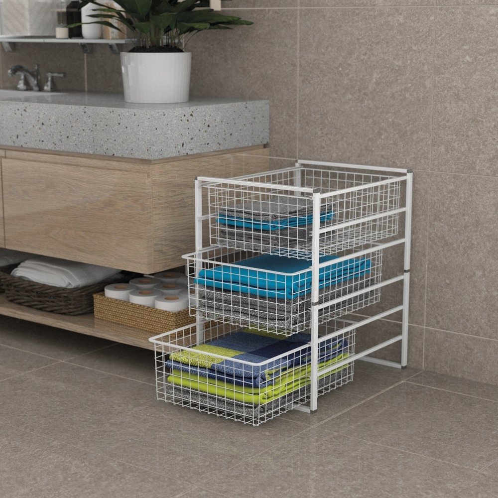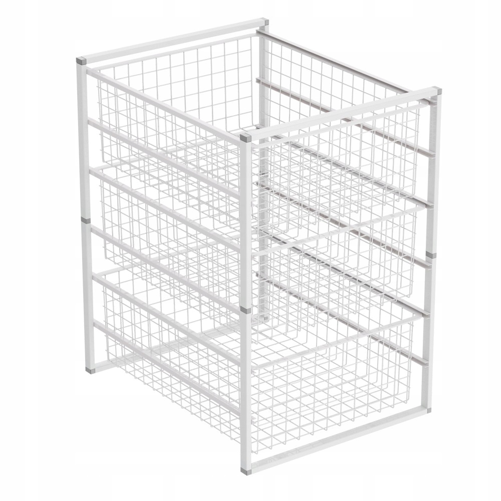 Набір окремо стоячих дротяних кошиків забезпечує належне місце для зберігання рушників, аксесуарів або навіть косметики та хімікатів. Ідеально підходить для гардеробу, комори або ванної кімнати. Завдяки висувним кошикам ця полиця дуже практична.
