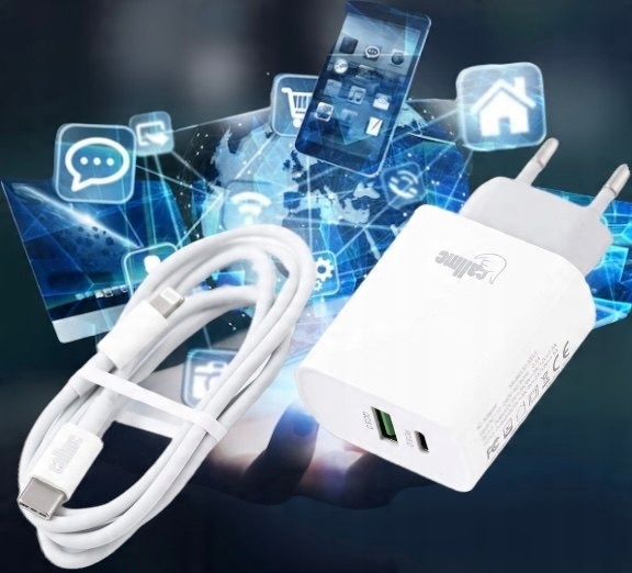 Швидкий мережевий зарядний пристрій 2 x USB QC USB-C PD живлення з кабелем iPhone