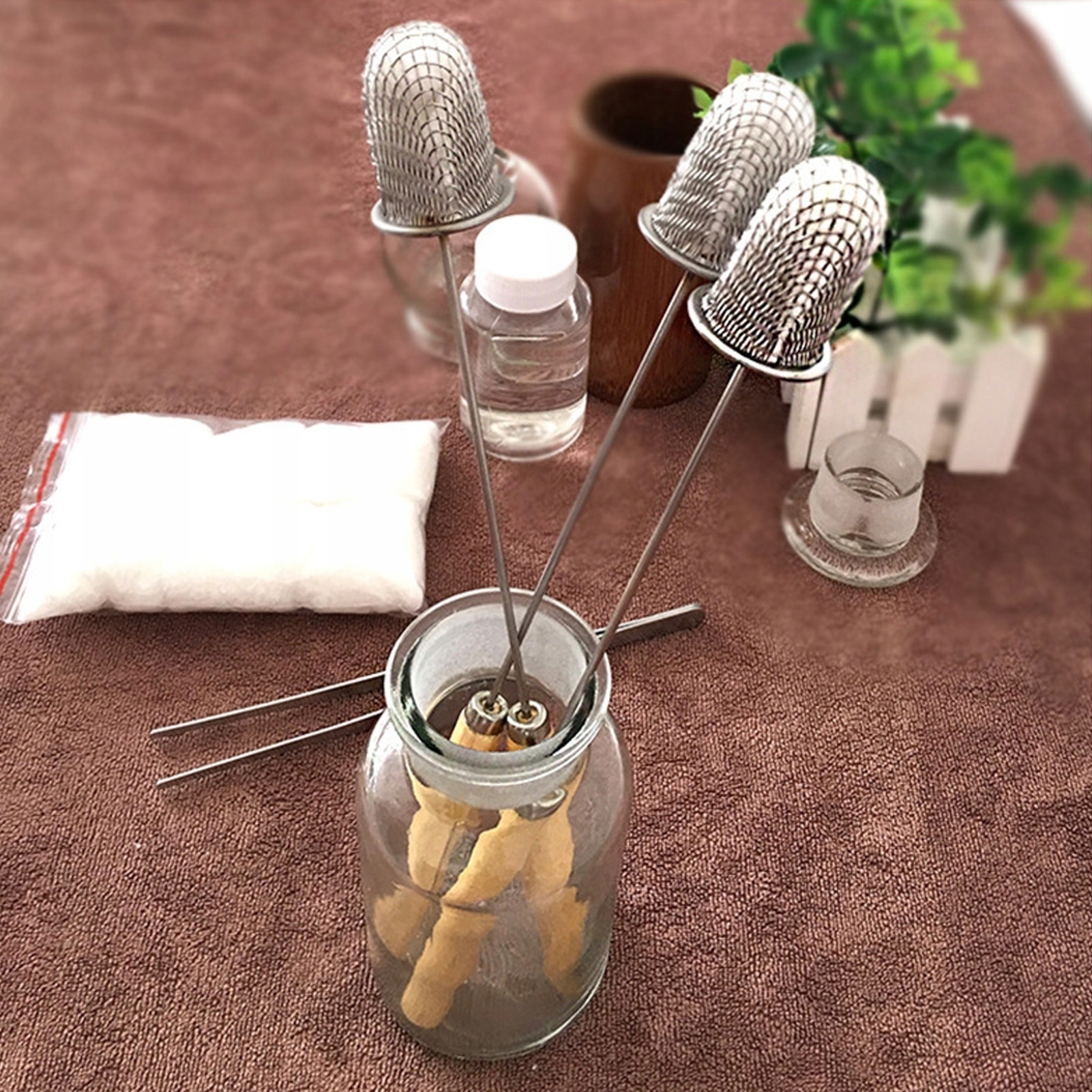 2 шт. Підсилювач бульбашок Стрижень запалювання Бавовняна головка Дерев’яна ручка Нержавіюча сталь Традиційний стрижень запалювання багаторазового використання