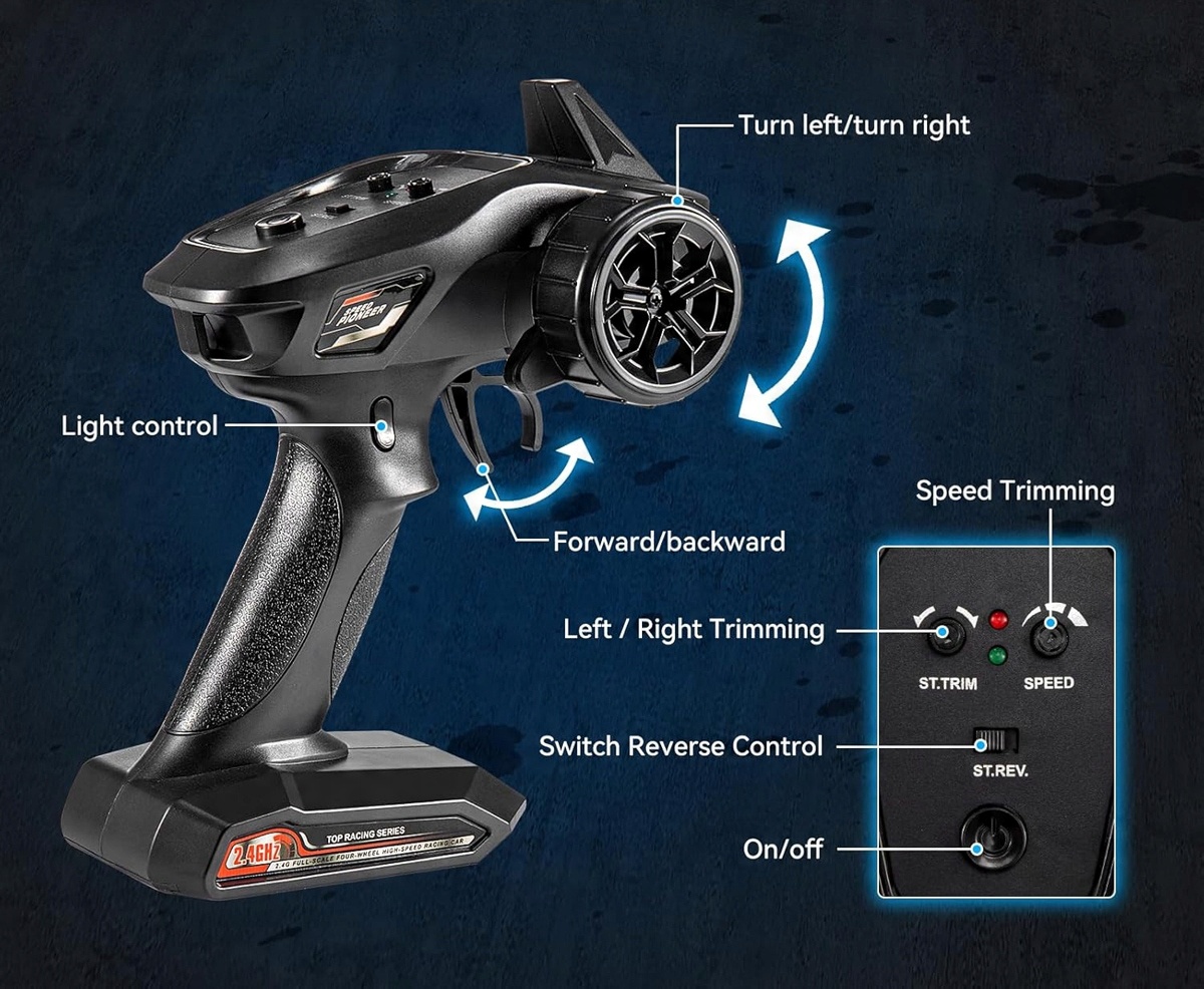 Пропорційне керування. 27/40 МГц. Захист від перешкод дозволяє керувати багатьма автомобілями одночасно.Сучасний пульт дистанційного керування