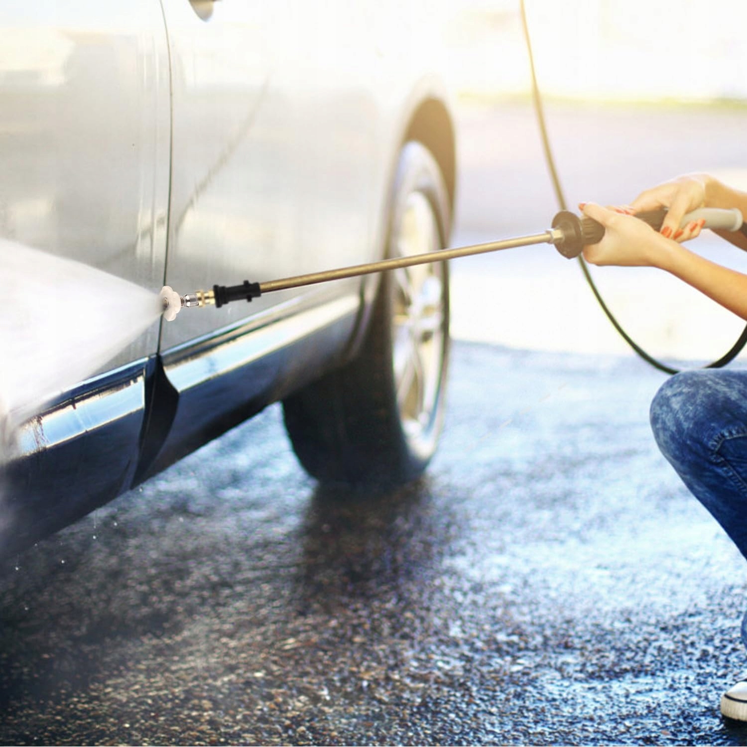 Багаторазове використання -Адаптер для мийки високого тиску підходить для прибирання автомобіля, миття вікон, під’їзної доріжки, даху, миття сайдингу, автомобільних дисків, недоступних кутів, чищення раковини, прибирання землі, прибирання великих площ, обприскування дерев тощо.