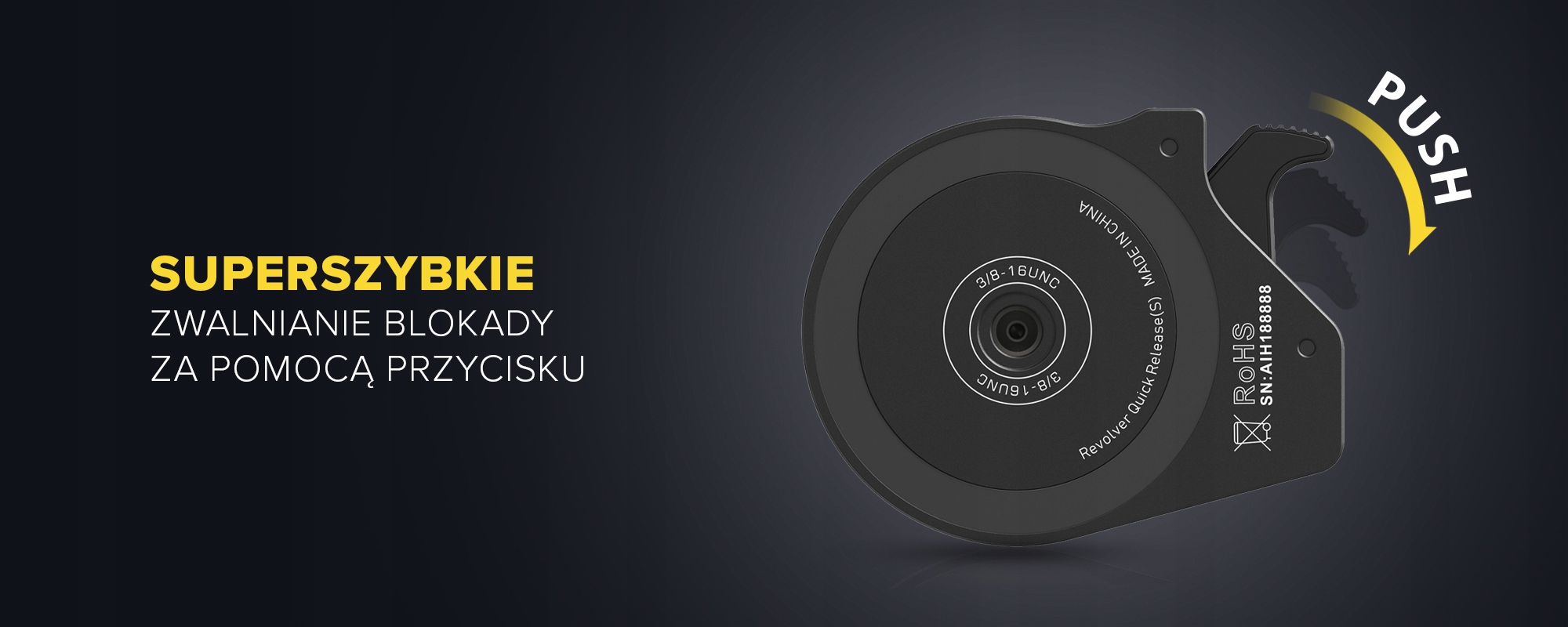 Швидкий шпилька для револьвера з швидким кріпленням - це верхній елемент революційної ручки, який збирає чудові відгуки серед режисерів та фотографів з усього світу. Вже після першого вкладення у швидкому кріпленні адаптера Zeapon Revolver Швидкий розетка ви забудете про існування інших швидких з'єднань. Цей унікальний набір зручно встановить камери та камери на штативи, моноподи, повзунки, голови, гімбали та пристрої "управління рухом". Більше постійних гвинтів і відкручування та пошуку правильного положення, що дозволяє ефективно блокувати затискач. Зробіть роботу з камерою або камерою, щоб стати простішим - приєднуйтесь до родини Zeapon! Аксесуари продаються окремо або в наборі (як швидкий власник складання Zeapon Revolver швидкий випуск). Обладнання під час зйомок або фотографування