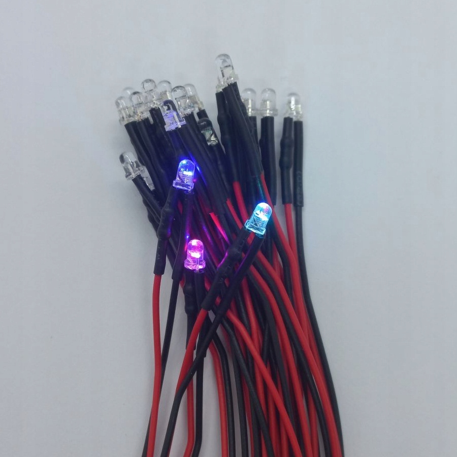 RGB-світлодіод шириною 3 мм, завдяки припаяному резистору, можна підключити безпосередньо до джерела живлення (до 12 В).