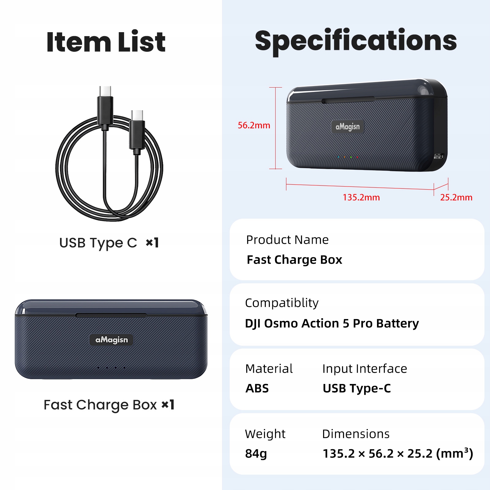 【акумуляторні акумулятори DJI Action 5 Pro】 Fast Action 5 Pro зарядний пристрій дозволяє швидко заряджати 3 акумулятори, завдяки якому завжди є ефективна. (Тільки підходить до DJI Action 5 Pro, а не DJI ACTION 4/3)