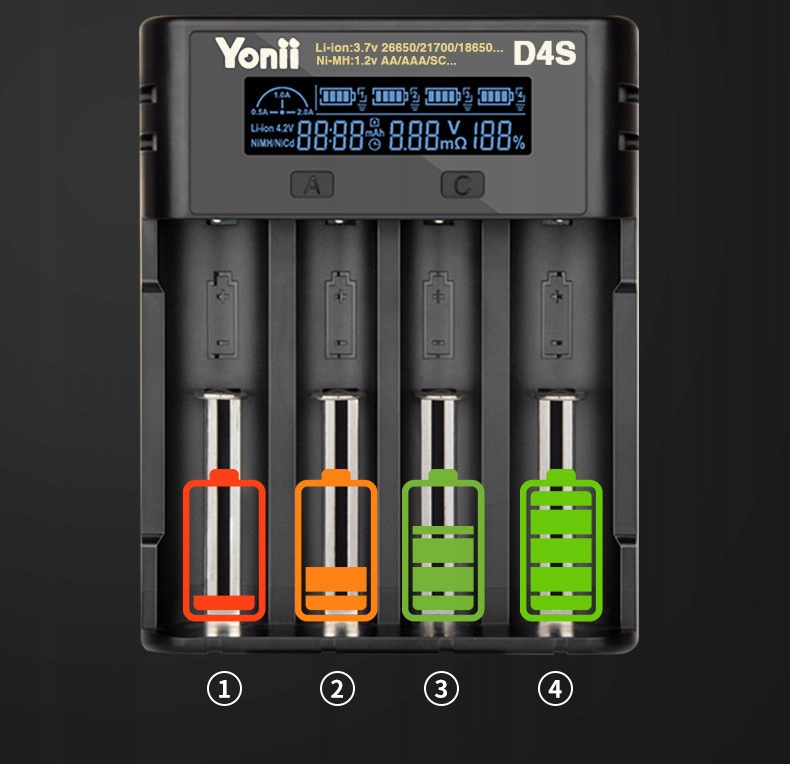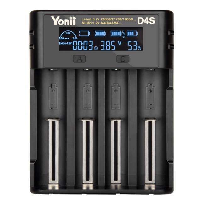 ШВИДКИЙ ЗАРЯДНИЙ ПРИСТРІЙ D4S ДЛЯ АКУМУЛЯТОРІВ AA ТА AAA 18650 21700 26650