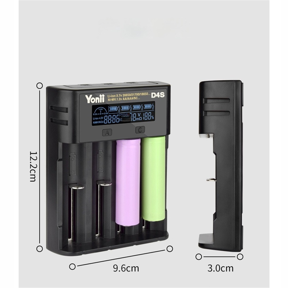 🔹Має 4 незалежні зарядні слоти 4 різних типи акумуляторів з максимальним струмом заряджання 2 A, а за допомогою кнопки «A» ви можете встановити струм заряджання 0,5 A/1 A/2 A та тип батареї для кожного слота.