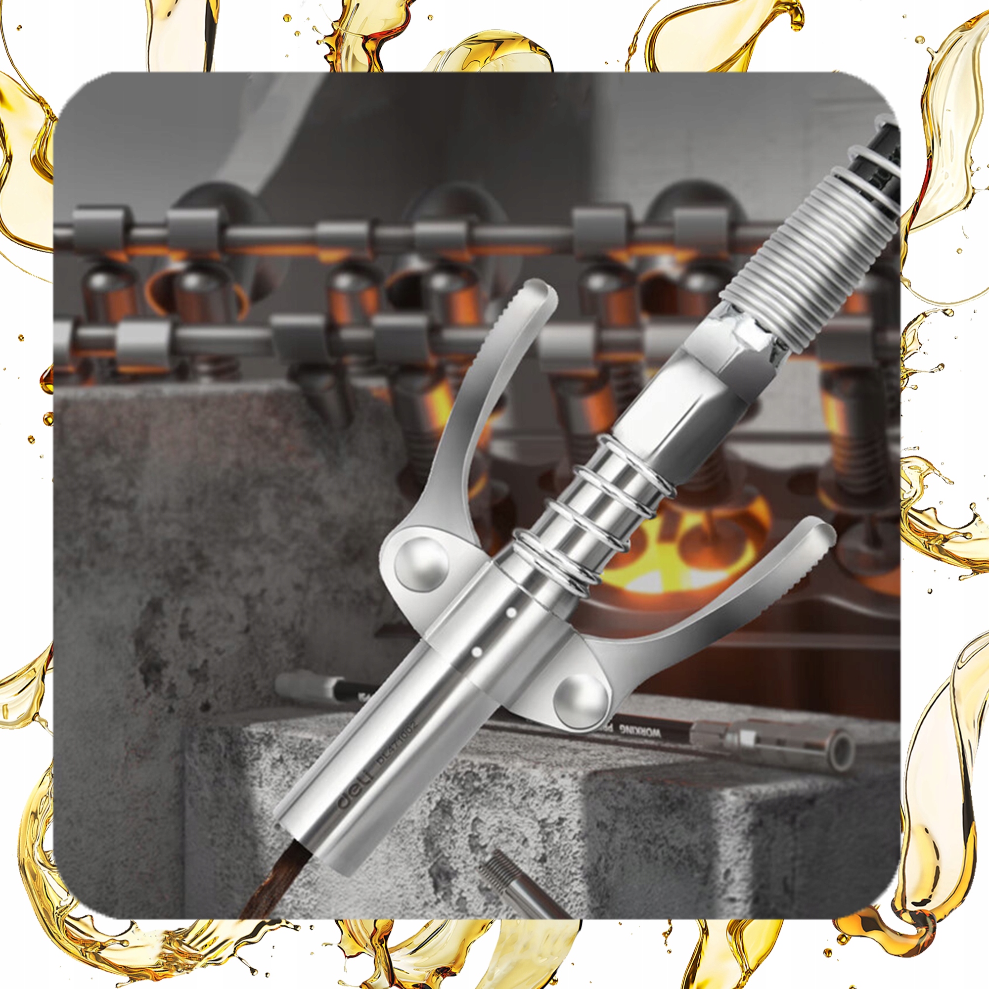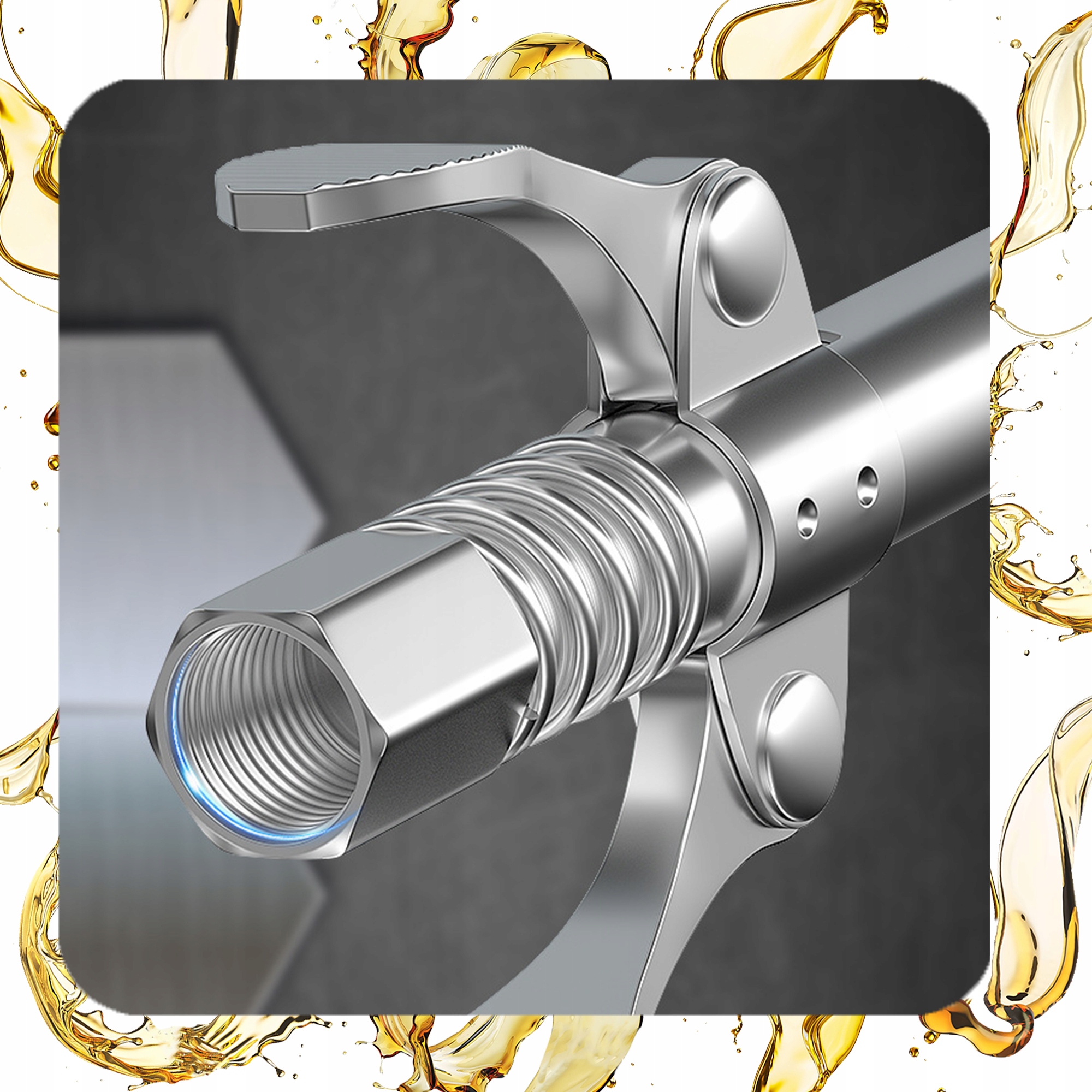 - Безпека: система самоблокування запобігає випадковому витоку мастила, а стійкість до високого тиску (до 10 000 фунтів на квадратний дюйм) гарантує безпечне використання.