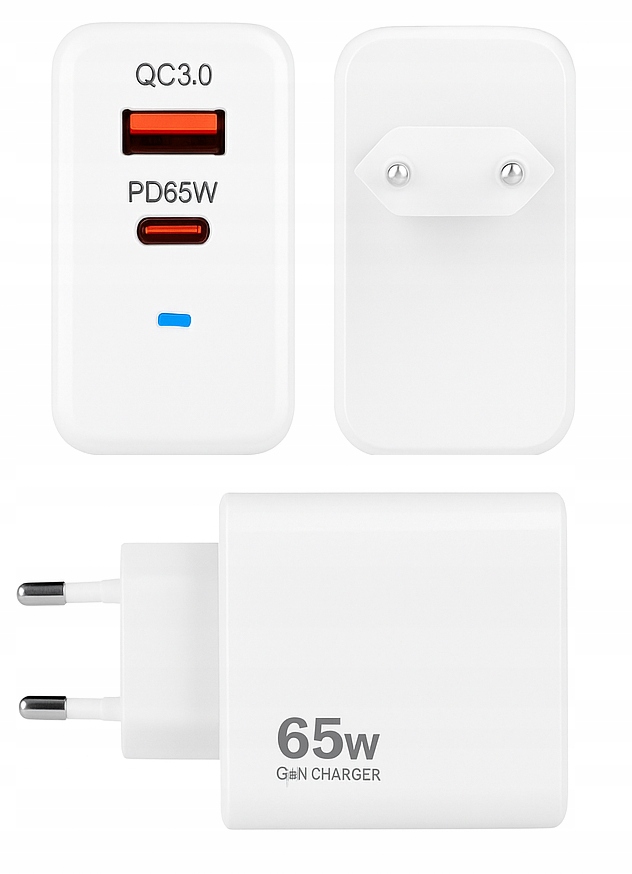 Сучасний зарядний пристрій GaN USB-C загальною потужністю 65 Вт із функціями Power Delivery (PD) і Quick Charge 3.0 є ідеальним рішенням для людей, які шукають компактний, ефективний і універсальний зарядний пристрій для щоденного використання. Завдяки вдосконаленій технології GaN (нітриду галію) пристрій забезпечує високу зарядну потужність, зберігаючи при цьому невеликий розмір і низьке тепловиділення.