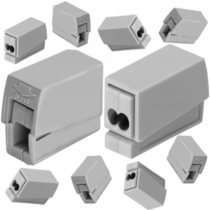 Двопровідний з’єднувач освітлення – чудовий спосіб з’єднати одножильні та багатожильні дроти. Ви заощадите багато часу та зусиль завдяки швидкій і прямій установці шляхом вставлення кабелів і стискання роз'єму. Завдяки наявності спеціального вимірювального отвору можна швидко і легко перевірити наявність напруги. З цим роз’ємом ви отримаєте безпеку завдяки використанню надійної техніки обтиску, адаптованої до типу використовуваних кабелів. Це позбавить від необхідності використовувати інструменти, що є важливою перевагою, особливо при установці у важкодоступних місцях. Типовими областями застосування є з’єднувальні кабелі з одножильною та багатожильною жилами, напр. освітлювальні прилади. У набір входить 10 штук таких виробів.