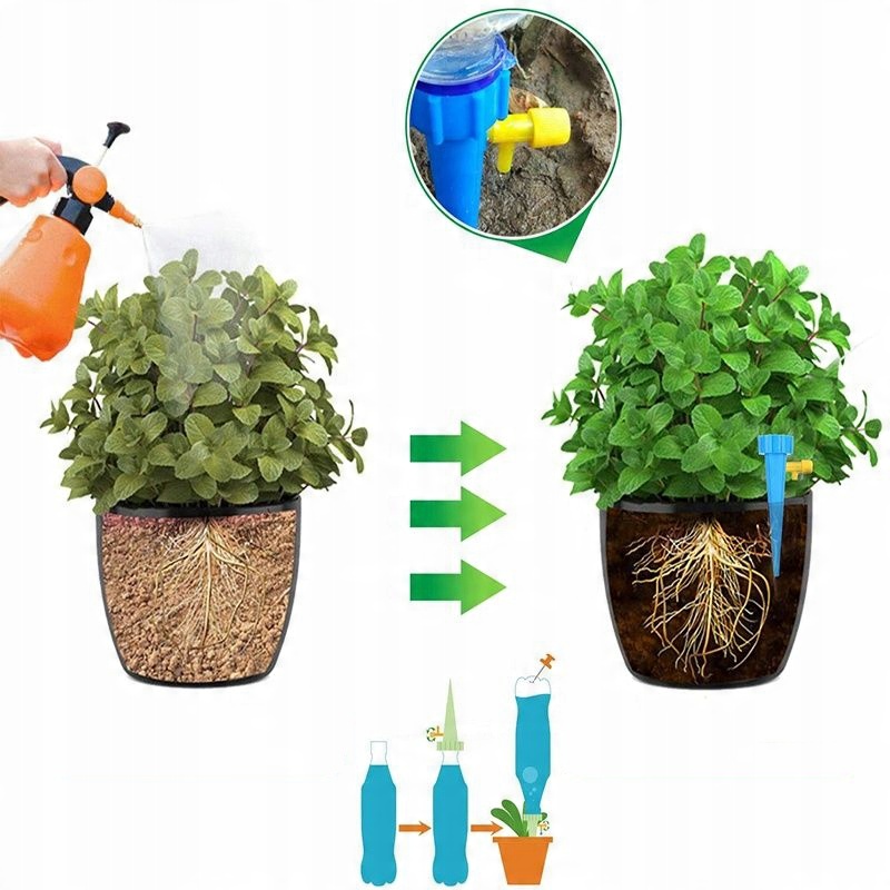 Дозатор для води підходить для більшості пляшок для напоїв, тож ви можете самостійно вибрати розмір резервуара для води та точно підібрати його до горщика.