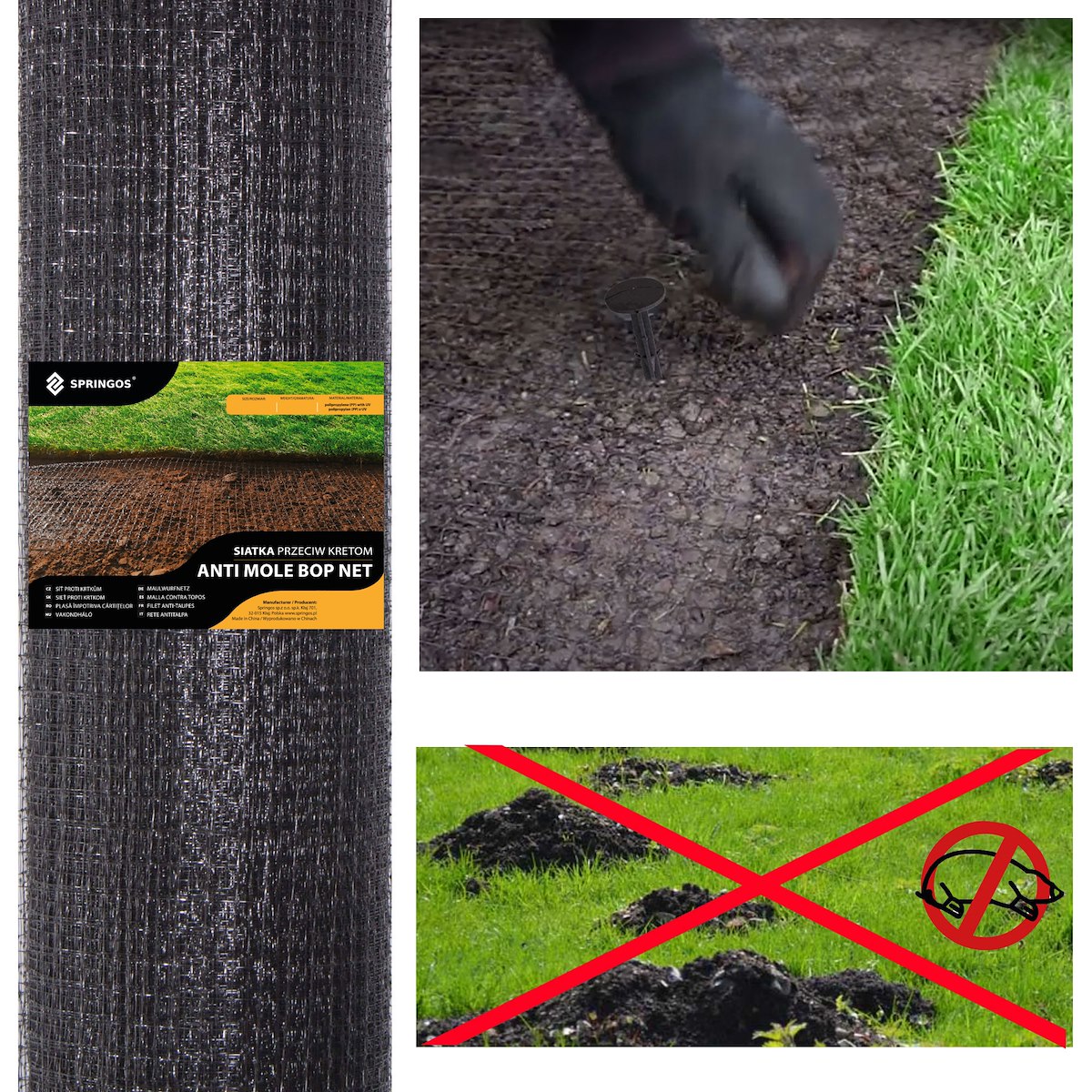 Сітка проти кротів від Springos® є одним із найефективніших рішень для що виникають кротові купи. Сітчастий матеріал безпечний для навколишнього середовища, тож вам не доведеться турбуватися про ґрунт чи рослини у вашому саду. Густа структура з дуже щільними сітками до ⭐16 мм разом із щільністю ⭐ 30 г/м2 ідеально підійде для позбавлення від проблема непривабливих горбів ґрунту. Завдяки використанню сітки створений сад буде гарним і безпечним.