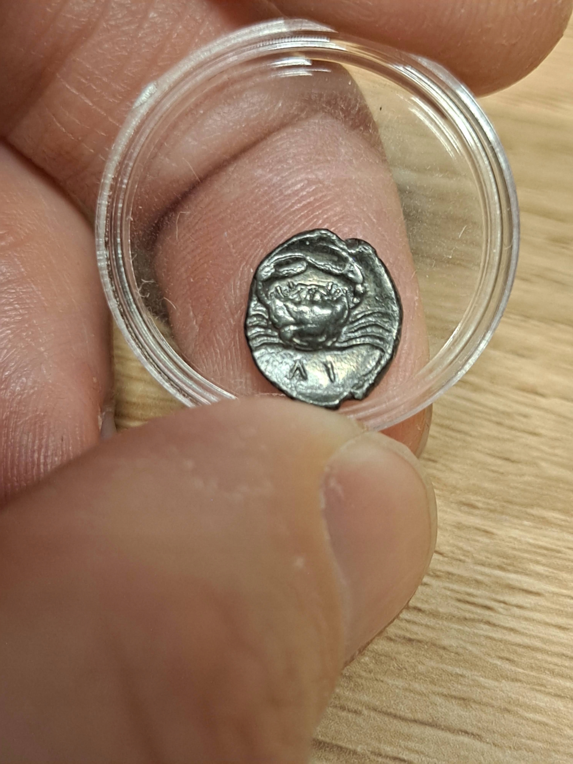 Сицилія, Акрагас, літри, срібло, 0.57 г, 9.5-11 мм. Датується приблизно 450-440 роками до н. е.