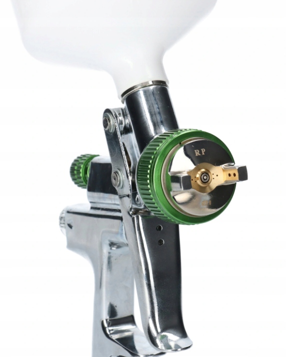Пистолет оснащений незалежним механізмом приведення повітря та фарби. Завдяки цьому рішенню при легкому натисканні на спусковий гачок з сопла виходить стиснене повітря, а потім при посиленні натискання на спусковий гачок виходить фарба. Підтримуйте потік рідини на мінімальному рівні, щоб не переривати роботу. Це забезпечить більш високу якість нанесеного покриття завдяки кращому розпилюванню матеріалу. Пістолет завжди слід направляти перпендикулярно до пофарбованої поверхні по прямій горизонтальній лінії. Пістолет оснащений гравітаційним резервуаром, що означає, що його можна фарбувати лише у верхньому положенні.