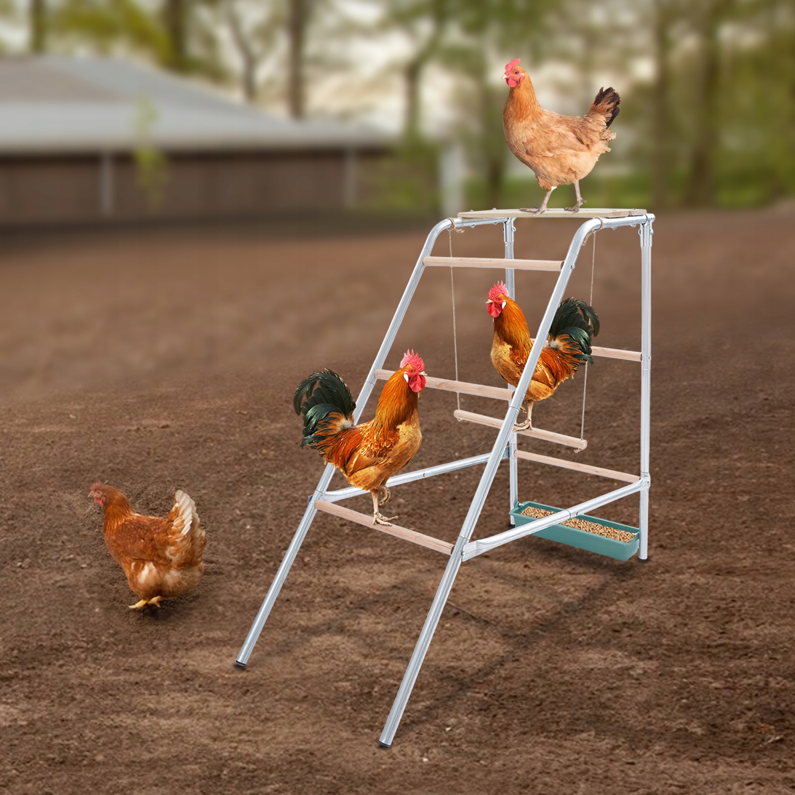 - Міцність і звук: Експертно розроблено для максимальної стабільності з рівномірним розподілом ваги, мінімізує ризик перекидання. Незалежно від того, чи курчата рухаються на платформах чи граються на гойдалках, сідало міцно стоїть на землі, забезпечуючи безпеку стада в будь-який час.