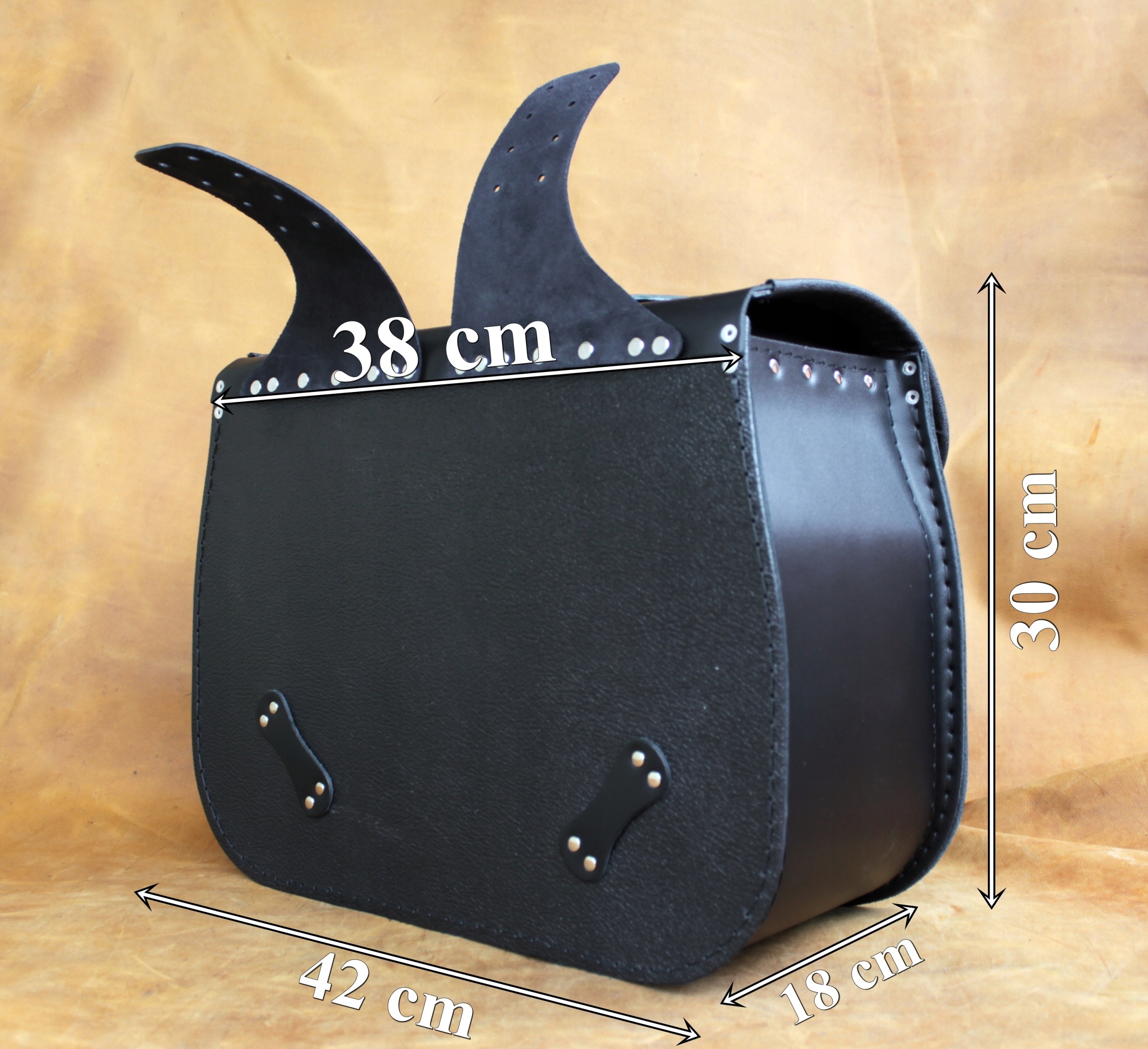 Сідельні сумки з гладкої шкіри без декоративних заклепок виготовлені з обтягнутої волової шкіри, додатково посиленої пластикомтовщиною 2 мм, завдяки чому підсідельні сумки зберігають свою первісну форму під час експлуатації.