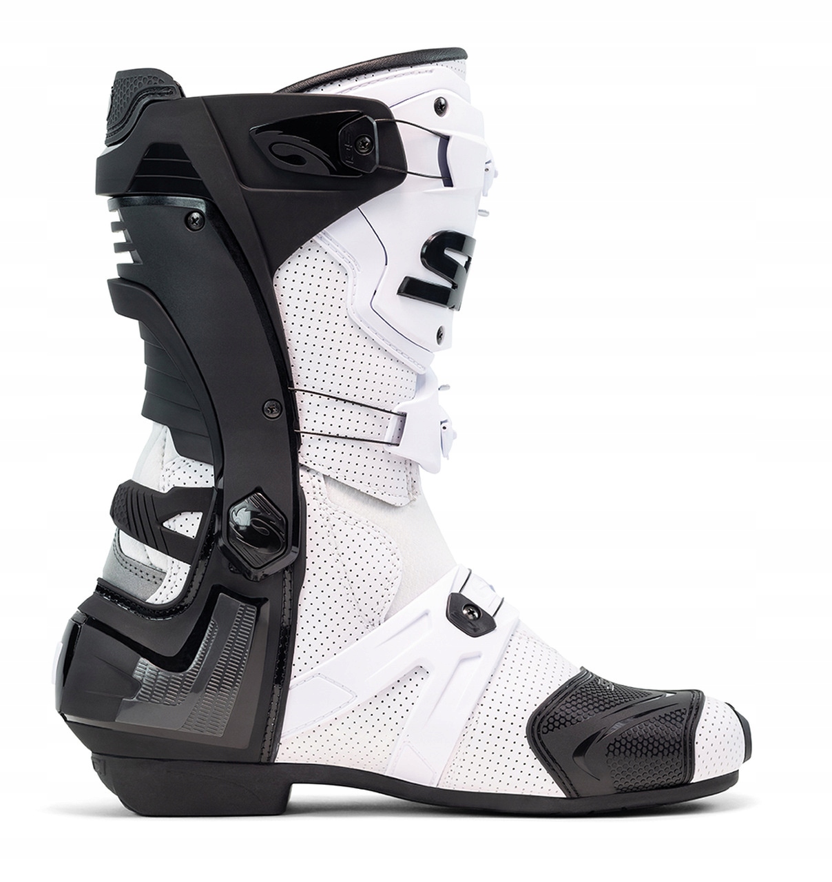 4 Модель REX заснована на досвіді, отриманому від перегонів MotoGP. Використовуваний технологічний матеріал надає взуття силу. Підошва взуття виготовлена з не -ковзаючої гуми, що забезпечить оптимальний рівень адгезії. Вміст повітря, розміщені в повзунках та вентиляційних отворах в ортезі голеностопа, - це вентиляційна система, головне завдання якої - забезпечити адекватну циркуляцію повітря. Три сталеві пряжки за допомогою системи натискання Tecno-3 відповідають за систему закриття взуття. Взуття Sidi Rex має сертифікат CE, який розповідає, що під час виробництва взуття творці керувались керівними принципами європейських стандартів безпеки.