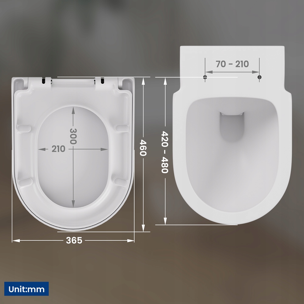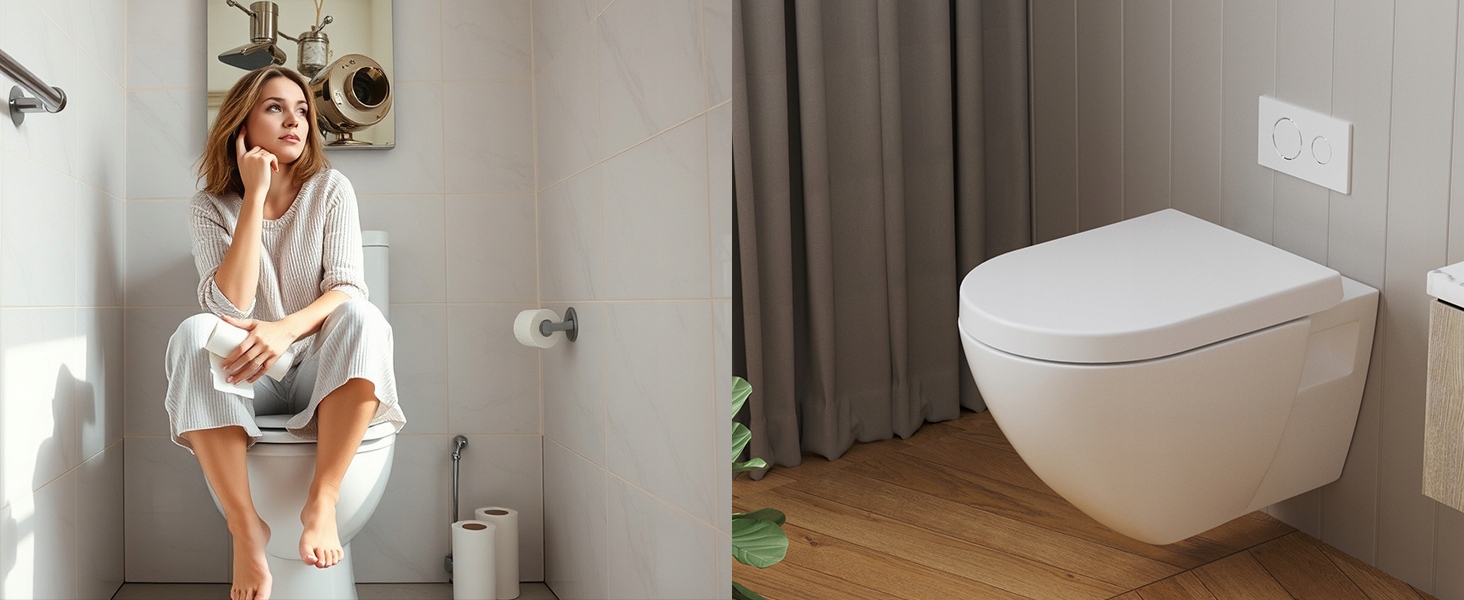 ➤ Кришка унітазу оснащенамеханізмом вільного падіння, який закривається повільно й безшумно без ударних звуків, усуваючи дратівливий шум. Це забезпечує тихе та комфортне використання як вдень, так і вночі.