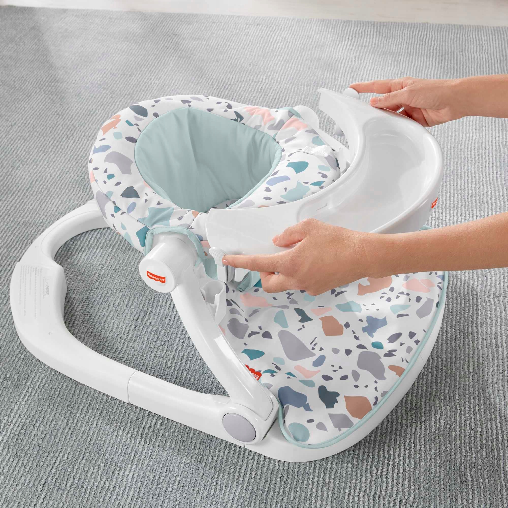 Сидіння Fisher-Price "Сиди зі мною" з чорним кольором, з малюнком кам'янистого пляжу, портативним дитячим сидінням з іграшками-HPF45
