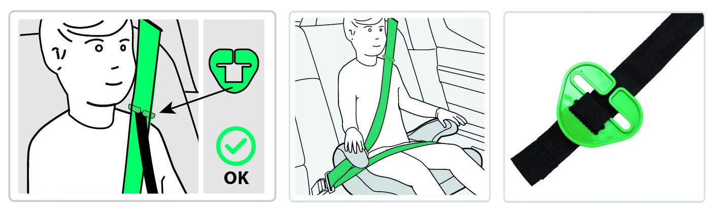 Сидіння оснащене додатковим ремінцем кріплення з направляючим, що забезпечує належне поводження з ременями безпеки. Посібник використовується для збереження плечового ременя в потрібному положенні при використанні сидіння.
