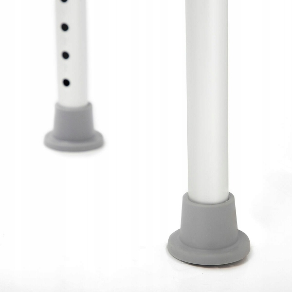 Оснащений вакуумними нековзкими ніжками, які запобігають ковзанню табурета по мокрій поверхні. Міцна конструкція з алюмінію, ABS і HDPE може витримувати навантаження до 130 кг.