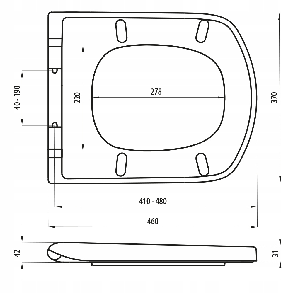 - el ширина кріплення: 40 - 190 мм