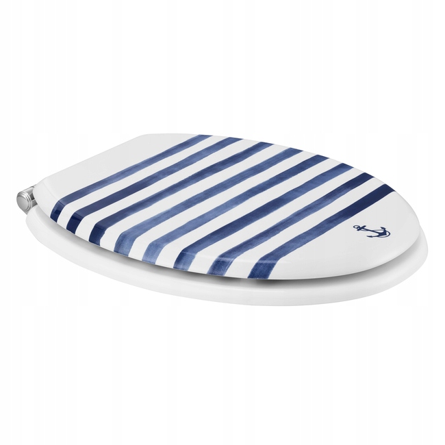 Сидло для унітазу GoodHome Pilica з МДФ повільного закривання білого кольору з морським малюнком урізноманітнює обстановку ванної кімнати. Модель виготовлена з МДФ. Завдяки цьому дошка GoodHome стійка до пошкоджень в результаті щоденного використання. Виріб стійкий до подряпин, тому надовго збереже свій естетичний вигляд. Анкерне сидіння для унітазу GoodHome Pilica MDF slow-close має гладку поверхню, з якої можна легко видалити забруднення. Виріб падає повільно і безшумно, тому користуватися ним зручно. Повільно закривається сидіння запобігає пошкодженню унітазу. У нашому асортименті представлено більше кольорових версій дощок серії Pilica, тож ви легко зможете підібрати продукт, який підійде до декору вашої ванної кімнати.